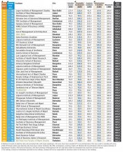 What is also visible is an overall improvement in scoring by colleges, a trend that started last year showing that most colleges have got their act together and have been engaged in improving their systems. This is more visible in the lower ranks than in the upper ranks. Last year, looking at a good response in participation by B-schools to our survey, we had increased the list from 75 to 100. This year, following another round of good participation, we have maintained that.